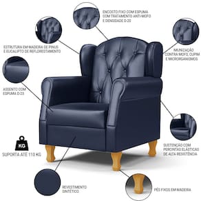 Sistema de Montagem: O produto é enviado pré-montado. Necessário apenas fixar os pés na Poltrona. Conteúdo da Embalagem: 2 Poltronas, 8 Pés de Madeira. Volumes: 2 Volumes. Garantia do Fabricante: 90 dias contra defeito de fabricação. Recomendação de Limpeza: Utilize pano levemente úmido.