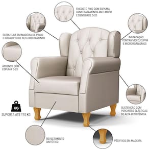Sistema de Montagem: O produto é enviado pré-montado. Necessário apenas fixar os pés na Poltrona.