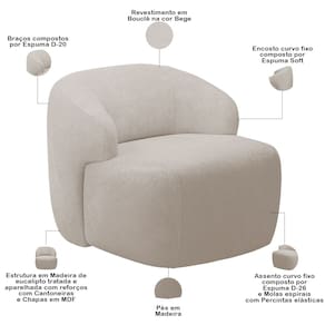 Kit 02 Poltronas Decorativa Fixa Orgânica Para Sala Living Barolo L06 Bouclê Bege - Lyam Decor