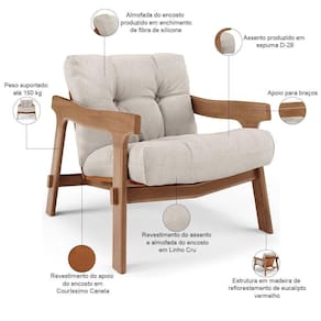 Revestimento do assento e da almofada do encosto em Linho na cor Cru.