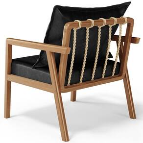 O Kit 02 Poltronas Decorativa Para Sala de Estar e Living Alícia B04 Couríssimo Preto Brilho é perfeito para adicionar um toque de estilo moderno a sua sala de estar. Com sua estrutura em madeira maciça envernizada, essa poltrona de madeira traz durabilidade e elegância para o ambiente. O assento estofado e revestido com materiais de qualidade oferece conforto excepcional, permitindo que você relaxe com estilo. Já o design moderno combina perfeitamente com qualquer tipo de decoração, tornando-a uma escolha versátil para qualquer sala de estar, living, recepção, escritório e diversos outros ambientes. A cereja do bolo fica por conta do detalhe da corda trançada no encosto com a almofada sobreposta, um charme à parte.