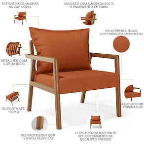 O Kit 02 Poltronas Decorativa Para Sala de Estar e Living Alícia B04 Tecido Liso Terracota é perfeito para adicionar um toque de estilo moderno a sua sala de estar. Com sua estrutura em madeira maciça envernizada, essa poltrona de madeira traz durabilidade e elegância para o ambiente. O assento estofado e revestido com materiais de qualidade oferece conforto excepcional, permitindo que você relaxe com estilo. Já o design moderno combina perfeitamente com qualquer tipo de decoração, tornando-a uma escolha versátil para qualquer sala de estar, living, recepção, escritório e diversos outros ambientes. A cereja do bolo fica por conta do detalhe da corda trançada no encosto com a almofada sobreposta, um charme à parte.