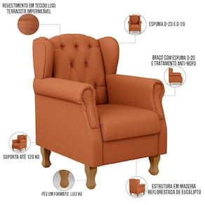 Kit 02 Poltronas Decorativa Para Sala De Estar Yara P02 Tecido Terracota - Lyam Decor