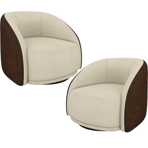 ProductWeight: 70 kg | Color: Marrom | ColorFamily: Marrom | ColorSimple: Marrom | ColorSupplier: Marrom | Material: Estrutura em madeira de reflorestamento de eucalipto, pinus e placas de OSB e imunizada contra mofo, | MaterialFamily: Madeira, Espuma | Model: Angelina | OriginCountry: | OriginState: PR | ProductContents: 02 Poltronas | SizeDescription: Altura: 83 cm x Largura: 87 cm x Profundidade: 90 cm | SupplierSimpleName: Kit 02 Poltronas Decorativas Giratória Angelina M03 Couríssimo Marrom Bouclê Bege - Lyam Decor | ProductLength: 90 cm | ProductWidth: 87 cm | ProductWarranty: 90 dias após o so produto | ProductHeight: 83 cm | ProductInstructions: Produto para uso residencial em ambiente interno, não devendo ficar exposto diretamente ao sol, calo