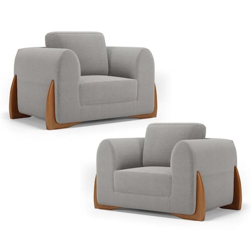 Kit 02 Poltronas Decorativas Living Bloom Com Pés De Madeira Bouclê Cinza - Desk Design