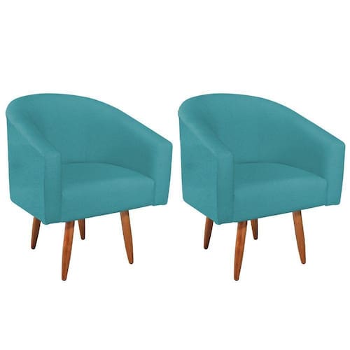 Kit 02 Poltronas Decorativas Luiza Pés Palito Suede - Doce Sonho Móveis Azul Turquesa