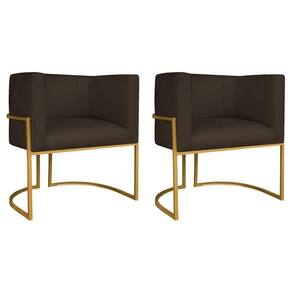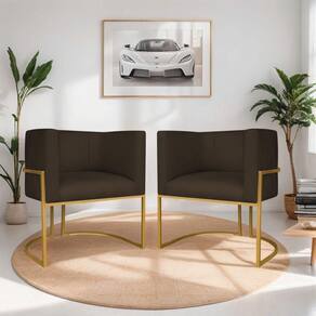 Kit 02 Poltronas Decorativas Luna Base De Ferro Dourado Sintético Cor Marrom