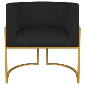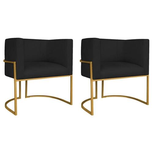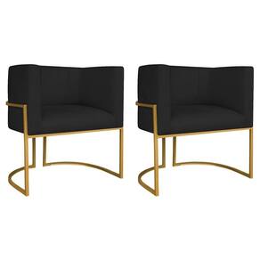 Kit 02 Poltronas Decorativas Luna Base De Ferro Dourado Sintético Cor Preto