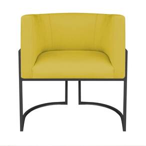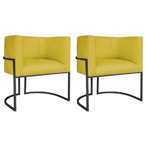 Kit 02 Poltronas Decorativas Luna Base De Ferro Preto Suede Amarelo
