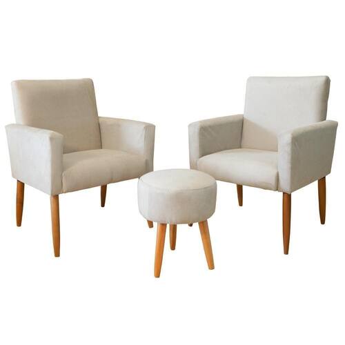 Os Kit 02 Poltronas Decorativa Nina Com Puff Suede Bege, possui alto conforto e visual moderno