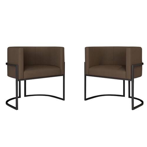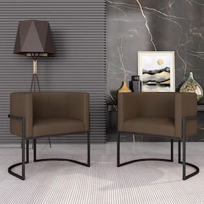 Detalhes Técnicos das Poltronas - Assento e Encosto Tapeçados, Estofados e Fixos - Espuma do Assento e do Encosto: D20 - Tonalidade: Preto Fosco (estrutura)/Suede Marrom (estofado) - Material: Metalon - Medida Poltrona: A: 75CM x L: 76CM x P: 60,5CM - Medida do chão até o assento: 48,5cm de altura - Poltrona suporta até 120KG - Montagem: Difícil