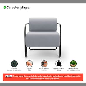 Seu encosto possui almofada solta 100% em fibra siliconada, oferecendo maciez e aconchego. O assento fixo, confeccionado com espuma D-26, manta acrílica e percintas elásticas, garante suporte e conforto prolongado. O revestimento em Veludo confere textura agradável e aparência sofisticada, ideal para compor diferentes estilos de decoração.