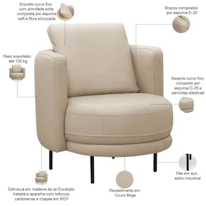 Com seu design orgânico de linhas arredondadas e pés em aço, ela traz um toque industrial moderno para qualquer ambiente. O revestimento em couro oferece resistência com um visual sofisticado, enquanto a espuma de alta densidade garante um assento incrivelmente confortável - perfeito para longas conversas ou momentos de relaxamento. Seja no living, home office ou quarto, a poltrona orgânica Belfort se destaca como uma peça decorativa cheia de personalidade, unindo o melhor do estilo industrial com o aconchego contemporâneo.