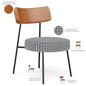 Revestimento encosto em Couríssimo na cor Camel e assento revestido em Veludo na cor Pied Poule.