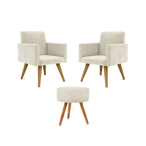 Duas poltrona NINA pés palito + 01 Puff Preto