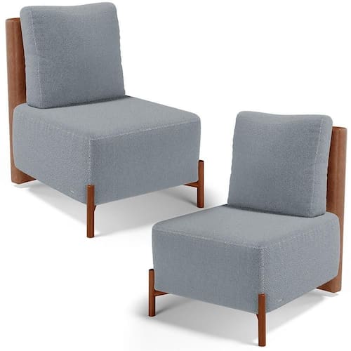 Kit 02 Poltronas Decorativas Sala De Estar Living Hungria L02 Couríssimo Camel Bouclê Cinza - Lyam
