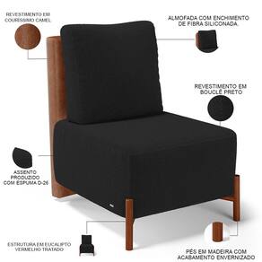 Revestimento do encosto em Couríssimo na cor Camel do assento em Bouclê na cor Preto, de alta qualidade.