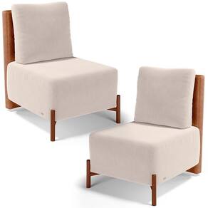 Kit 02 Poltronas Decorativas Sala De Estar Living Hungria L02 Couríssimo Camel Suede Bege - Lyam