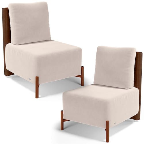 Kit 02 Poltronas Decorativas Sala de Estar Living Hungria L02 Couríssimo Marrom Suede Bege - Lyam