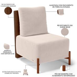Revestimento do encosto em Couríssimo na cor Marrom do assento em Suede na cor Bege, de alta qualidade.