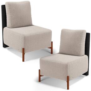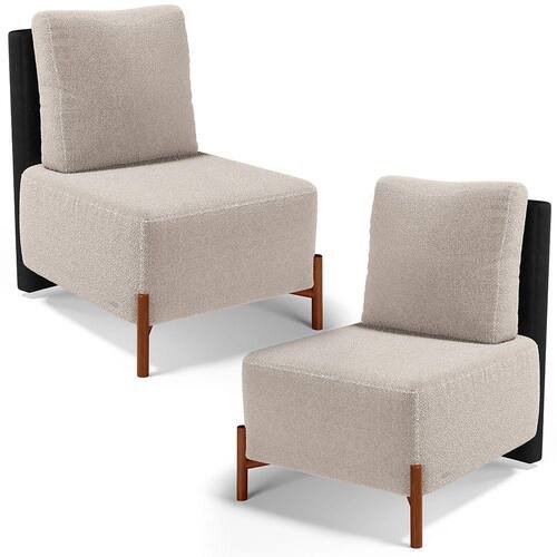 Kit 02 Poltronas Decorativas Sala de Estar Living Hungria L02 Couríssimo Preto Bouclê Creme - Lyam - Bege Médio