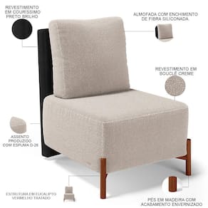 Revestimento do encosto em Couríssimo na cor Preto do assento em Bouclê na cor Creme, de alta qualidade.