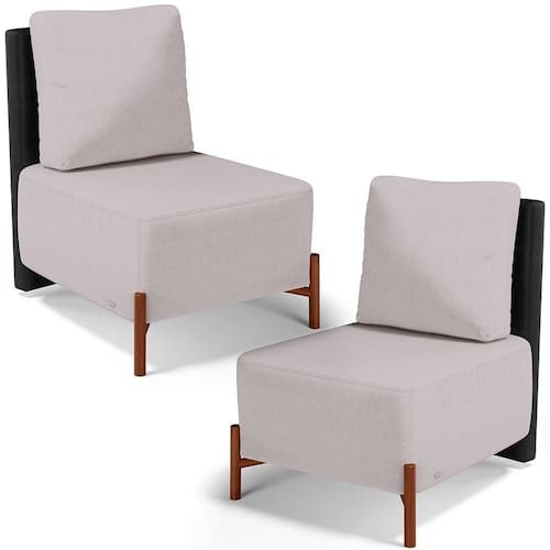 Kit 02 Poltronas Decorativas Sala De Estar Living Hungria L02 Couríssimo Preto Linho Bege - Lyam