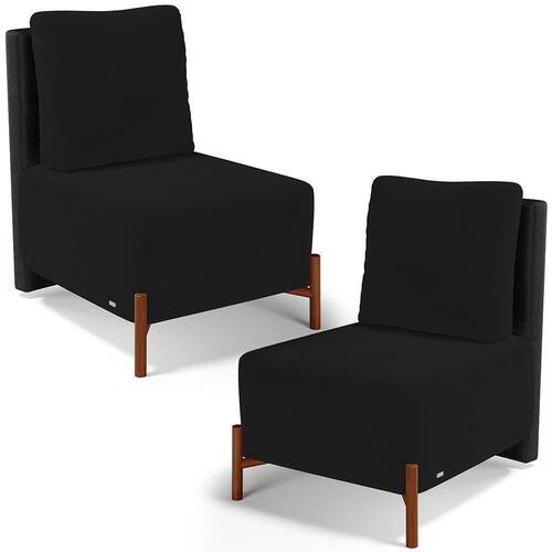 Kit 02 Poltronas Decorativas Sala De Estar Living Hungria L02 Couríssimo Preto Suede Preto - Lyam