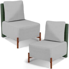 Kit 02 Poltronas Decorativas Sala De Estar Living Hungria L02 Couríssimo Verde Linho Cinza - Lyam