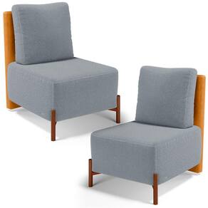 Kit 02 Poltronas Decorativas Sala de Estar Living Hungria L02 Couríssimo Whisky Bouclê Cinza - Lyam - Cinza Claro