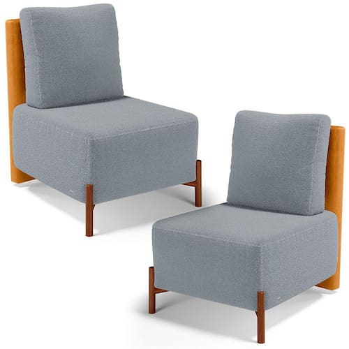 Revestimento do encosto em Couríssimo na cor Whisky do assento em Bouclê na cor Cinza, de alta qualidade.