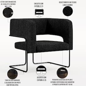 Um show á parte é a nossa Kit 02 Poltronas Decorativas Scarlett D02 Base Aço Preto Linho Chumbo C-465 - Lyam Decor! O encosto vazado, e a base de metal transmitem a modernidade de detalhes tão delicados, que garantem a aprovação dos olhares mais exigentes de uma sala de estar bem decorada! É ideal se você está buscando uma peça elegante e confortável! Possui acabamentos impecáveis, e exatamente pensados pra uma peça única! Estruturada em madeira de eucalipto tratado, com assento e encosto com espuma de altíssima qualidade, garantindo o conforto que você merece! Arrisque em um fora do básico, e impressione com o bom gosto! Garanta já o seu!