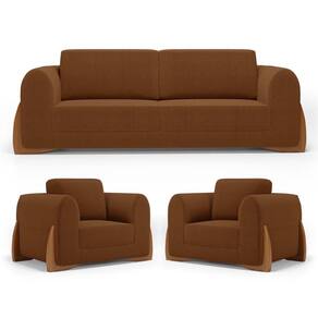 Kit 02 Poltronas E 01 Sofá Bloom 160cm 02 Lugares Com Pés De Madeira Bouclê Terracota - Desk Design