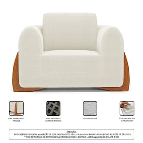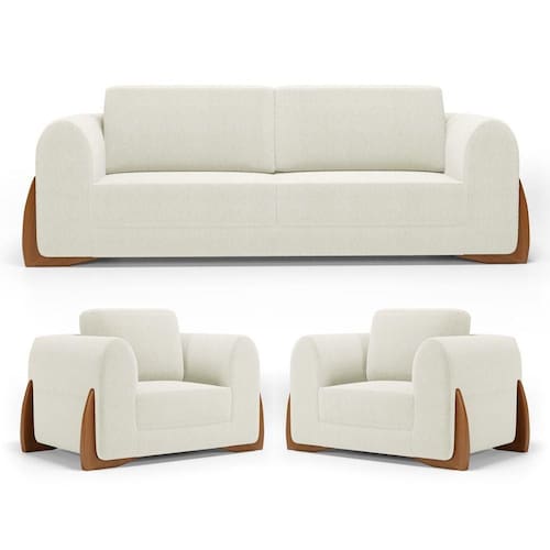 Kit 02 Poltronas E 01 Sofá Bloom 180cm 02 Lugares Com Pés De Madeira Bouclê Off White - Desk Design