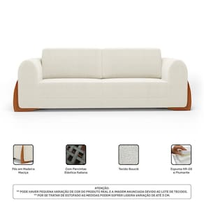 Kit 02 Poltronas E 01 Sofá Bloom 180cm 02 Lugares Com Pés De Madeira Bouclê Off White - Desk Design - Branco