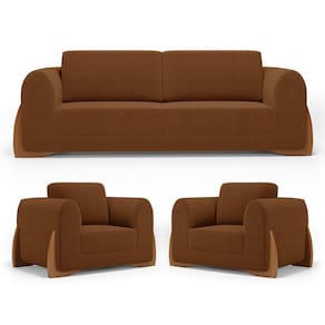 Kit 02 Poltronas E 01 Sofá Bloom 200cm 03 Lugares Com Pés De Madeira Bouclê Terracota - Desk Design