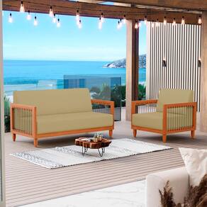 Que tal o Conjunto de Poltronas e Sofá Varanda Samoa Madeira Maciça com Cordas Náutica?
