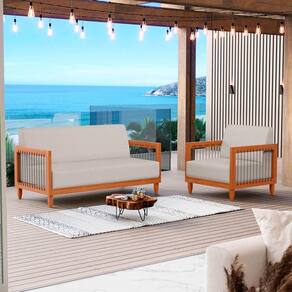 Que tal o Conjunto de Poltronas e Sofá Varanda Samoa Madeira Maciça com Cordas Náutica?