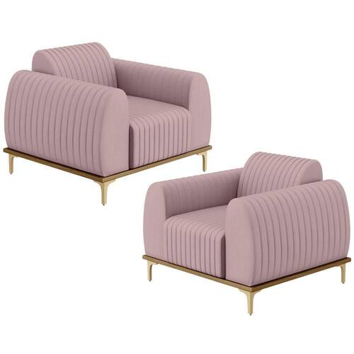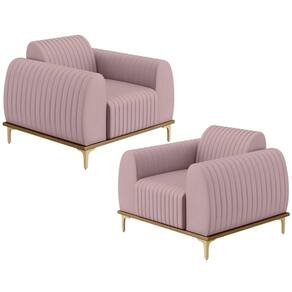 Com muita originalidade e personalidade o Kit 02 Poltronas Decorativas Base De Madeira e Pés D'Ouro Molino D02 Veludo Rosê C-305 - Lyam Decor vem para requintar ainda mais sua decoração. Bastante sofisticada, é ideal se você está buscando uma peça elegante e confortável. Possui acabamentos impecáveis, é estruturada em madeira de eucalipto tratado, unidas com grampos galvanizados, base envernizada e pés de alumínio na cor DOuro que a tornam ainda mais atraente e convidativa.