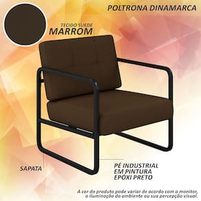 Kit 02 Poltronas Estofadas Dinamarca Industrial Preto/marrom - M.a