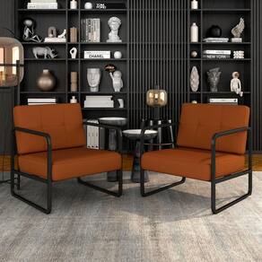 Kit 02 Poltronas Estofadas Dinamarca Industrial Preto/terracota - M.a - Laranja