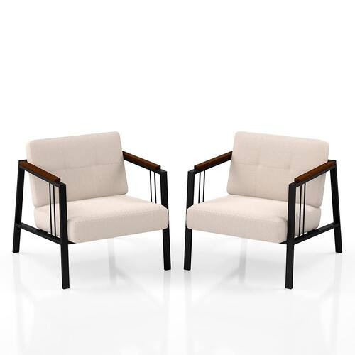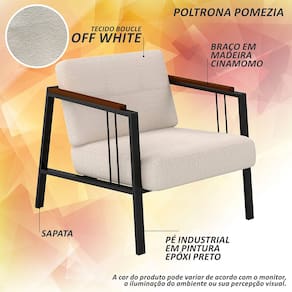 Detalhes Técnicos das Poltronas - Assento e Encosto Tapeçados, Estofados e Fixos - Espuma do Assento e do Encosto: D20 - Tonalidade Estrutura: Preto Fosco -Tonalidade Estofado: Bouclé Off White - Material: Metalon - Medida Poltrona: A:80CM x L:73CM x P:88CM - Poltrona suporta até 120KG Conteúdo da Embalagem - 02 Poltrona - Manual de Montagem - Acessórios para Montagem