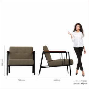 Detalhes Técnicos das Poltronas - Assento e Encosto Tapeçados, Estofados e Fixos - Espuma do Assento e do Encosto: D20 - Tonalidade Estrutura: Preto Fosco -Tonalidade Estofado: Suede Capuccino - Material: Metalon - Medida Poltrona: A:80CM x L:73CM x P:88CM - Poltrona suporta até 120KG Conteúdo da Embalagem - 02 Poltrona - Manual de Montagem - Acessórios para Montagem