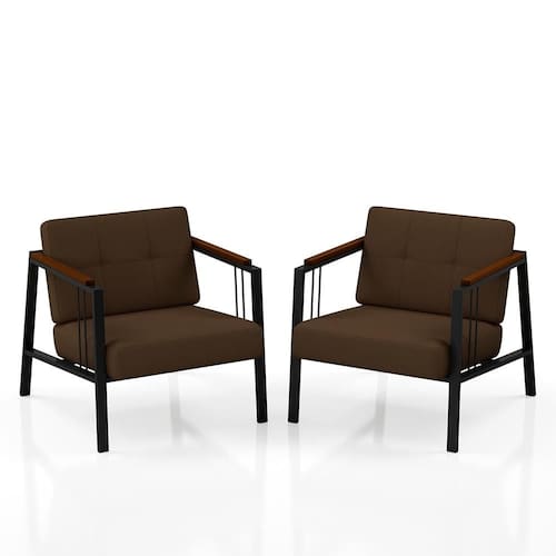 Detalhes Técnicos das Poltronas - Assento e Encosto Tapeçados, Estofados e Fixos - Espuma do Assento e do Encosto: D20 - Tonalidade Estrutura: Preto Fosco -Tonalidade Estofado: Suede Marrom - Material: Metalon - Medida Poltrona: A:80CM x L:73CM x P:88CM - Poltrona suporta até 120KG Conteúdo da Embalagem - 02 Poltrona - Manual de Montagem - Acessórios para Montagem