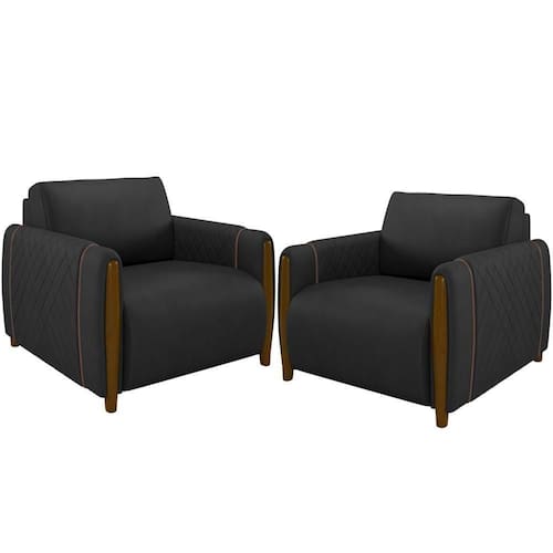 Kit 02 Poltronas Para Sala De Estar Pés De Madeira Fixa Flora M03 Couríssimo Preto - Lyam Decor A Poltrona Flora promete marcar com elegancia e versatilidade á presença em diversos estilos de decoracao. O modelo certo é essencial para o bom funcionamento dos cômodos da casa, por isso, um sofá bem estruturado é mais do que necessário na sala de estar! O design aconchegante se destaca junto aos pés madeirados e o revestimento em Couríssimo! Extremamente elegante, que transmite a nobreza que ele precisa! Tudo isso para gerar conforto para você e sua família em uma peça única feita com todo cuidado e observada nos detalhes para superar as suas expectativas! Adquira o seu! Dimensões do produto (L x A x P) 98 x 74 x 88 cm Características: Estrutura em madeira de reflorestamento, imunizada contra mofo. Revestimento em Couríssimo na cor Preto. Encosto fixo almofadado com fibras e flocos com manta acrílica e assento com espuma D-26. Pés em madeira tingida. Acabamento em Kami. Suporta até 120 kg por assento. - Por se tratar de estofado as medidas podem ter uma pequena variação de até 3 cm. - A tonalidade do produto real poderá ter ligeira variação devido o lote de tecidos. Produto entregue montado. Indicado para uso residencial, sua limpeza deve ser feita com pano umedecido em água limpa, sem esfregar, não utilizar produtos abrasivos, desengordurantes, álcool ou solvente. Nunca sentar nos braços ou encosto do produto. Manter em lugar livre de umidade e/ou exposição direta ao sol. Observações importantes: - Produto para uso residencial em ambiente interno, não devendo ficar exposto diretamente ao sol, calor e umidade excessivos. - Pode haver alguma diferença de tonalidade entre a imagem e o produto real, por conta do tratamento de imagens e a calibração de cores do seu monitor. - As imagens são meramente ilustrativas, não acompanham objetos de decoração e eletrônicos. - Ao receber a mercadoria, o cliente deve verificar as condições da embalagem, caso haja alguma não assine o de . - Montagem, desmontagem e outras instalações serão de responsabilidade do cliente. Não nos responsabilizamos, no ato da , por subir escadas/elevadores ou pelo por guincho em apartamentos. Eventuais despesas são de responsabilidade do comprador. - Confira as dimensões do produto e certifique-se de que passará normalmente por supostos elevadores, portas, escadas e/ou corredores de sua residência. NA