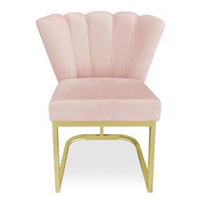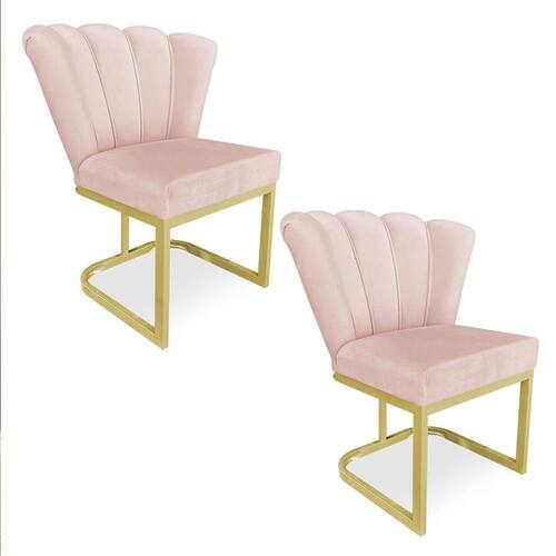 Kit 02 Poltronas Flor Veludo Rosa Bebê Base Metálica Industrial Dourado - Pallazio