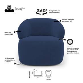 Kit 02 Poltronas Giratória e 01 Sofá Orgânico Glee 02 Lugares 140cm Veludo Azul Marinho - Abmaza