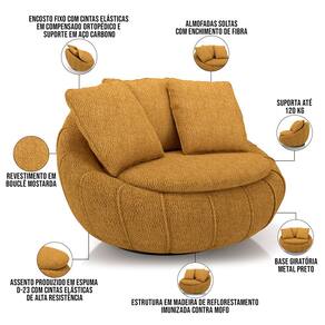 Seja para adicionar assento extra na sala de estar ou para dar um toque de charme no living, escritório e até mesmo quarto, essa poltrona redonda proporciona conforto e bem-estar, enquanto agrega sofisticação e modernidade; afinal é um estofado bem estruturado com materiais alto padrão. Tudo isso para gerar conforto para você e sua família em uma peça única feita com todo cuidado e observada nos detalhes para superar as suas expectativas! Adquira o seu!