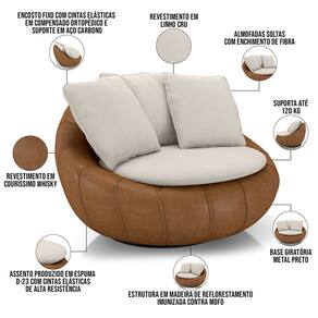 Seja para adicionar assento extra na sala de estar ou para dar um toque de charme no living, escritório e até mesmo quarto, essa poltrona redonda proporciona conforto e bem-estar, enquanto agrega sofisticação e modernidade; afinal é um estofado bem estruturado com materiais alto padrão. Tudo isso para gerar conforto para você e sua família em uma peça única feita com todo cuidado e observada nos detalhes para superar as suas expectativas! Adquira o seu!