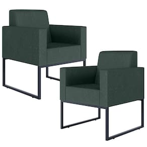 Kit 02 Poltronas Decorativa Sala Recepção Base Fixa De Metal Helô L02 Linho Verde Musgo - Lyam Decor